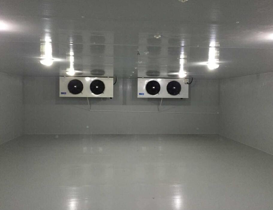 2、制冷系統(tǒng)配備一套12HP美國進(jìn)口艾默生渦旋壓縮機(jī)組(含風(fēng)冷冷凝器、加大散熱器等),該機(jī)組制冷量大,性價比高,安全可靠。冷庫內(nèi)配備了一套上海庫迪DL-8O系列高效強(qiáng)風(fēng)型冷風(fēng)機(jī),該風(fēng)機(jī)運(yùn)行穩(wěn)定噪音小,送風(fēng)距離遠(yuǎn),使得庫內(nèi)降溫速度快,極大增強(qiáng)了化霜效果,增加快速對流循環(huán),從而達(dá)到每個角落的溫度均勻性。